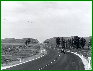 Left: the intersection with SR-74 at the exact location of the current I-215/SR-74 (east) interchange. However, this interchange was turned into a grade separation in 1962. |